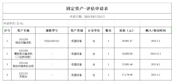 本次处置的废旧设备设施共4台,设备设施类别主要是生产机械,详见下表:
