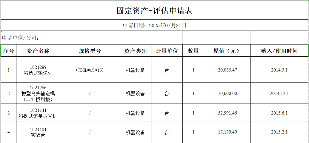 本次处置的废旧设备设施共4台,设备设施类别主要是生产机械,详见下表: