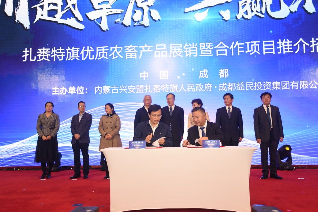 11月27日,益民集团与内蒙古兴安盟扎赉特旗携手举办的“川越草原 共赢未来” 扎赉特旗优质农畜产品展销暨合作项目推介招商会,在成都成功举办。会上,益民集团与扎赉特旗人民政府在正式签订战略合作框架协议,将在种植、养殖板块,粮食、肉类加工以及农副产品贸易等领域全面合作。