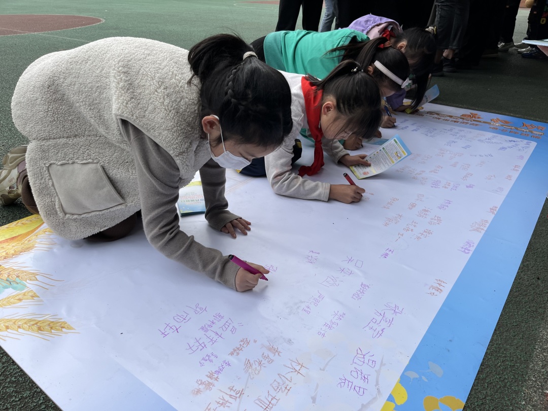 还邀请小朋友们签署“厉行节约 反对浪费”倡议书,进一步引导小朋友在现实生活中爱粮、节粮、惜粮,关注粮食安全,树立“粮食安全 人人有责”意识,做到节约粮食,拒绝铺张浪费。