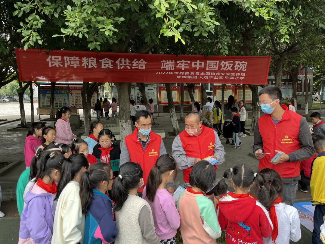 为进一步深入实施国家粮食安全战略,建立健全粮食安全宣传教育长效机制,向全社会宣传科普粮食安全的重要性,培养广大人民群众爱粮节粮意识,10月14日下午,成粮集团青白江产业园在弥牟小学开展“保障粮食供给 端牢中国饭碗”2022年世界粮食日和全国粮食安全宣传周活动。
