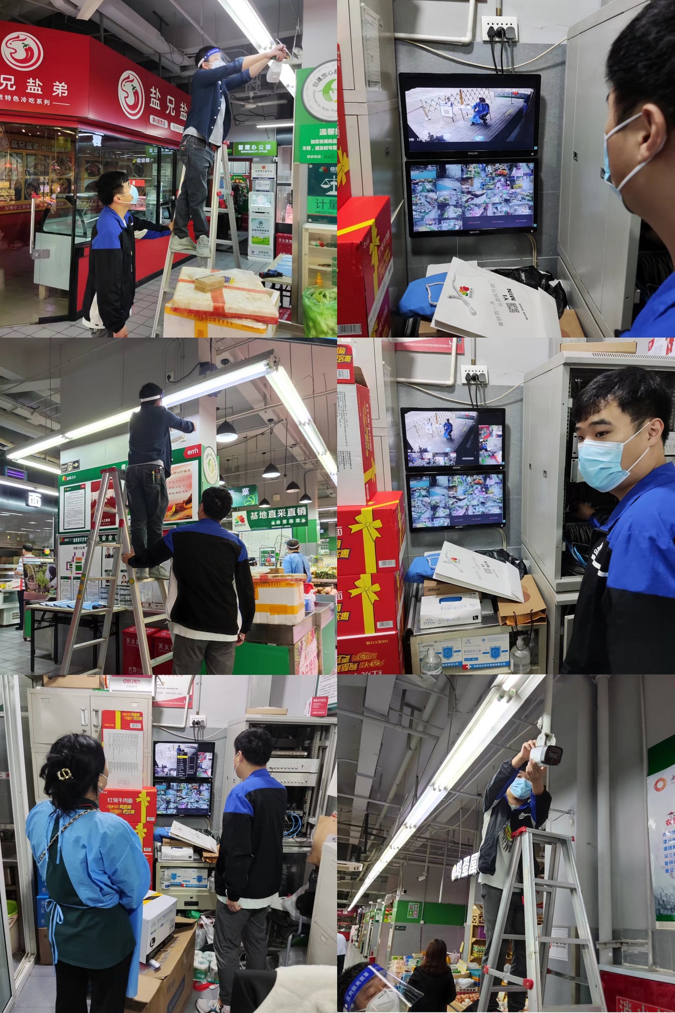为配合益民菜市门店有序保供,益民科技公司增派运维保障人员对门店的播控系统、视频监控系统、网络系统等设施设备进行维修和维护,助力防疫政策宣传,减轻防疫保供人员政策宣传压力,以更饱满的精神打赢防疫保供的攻坚战。