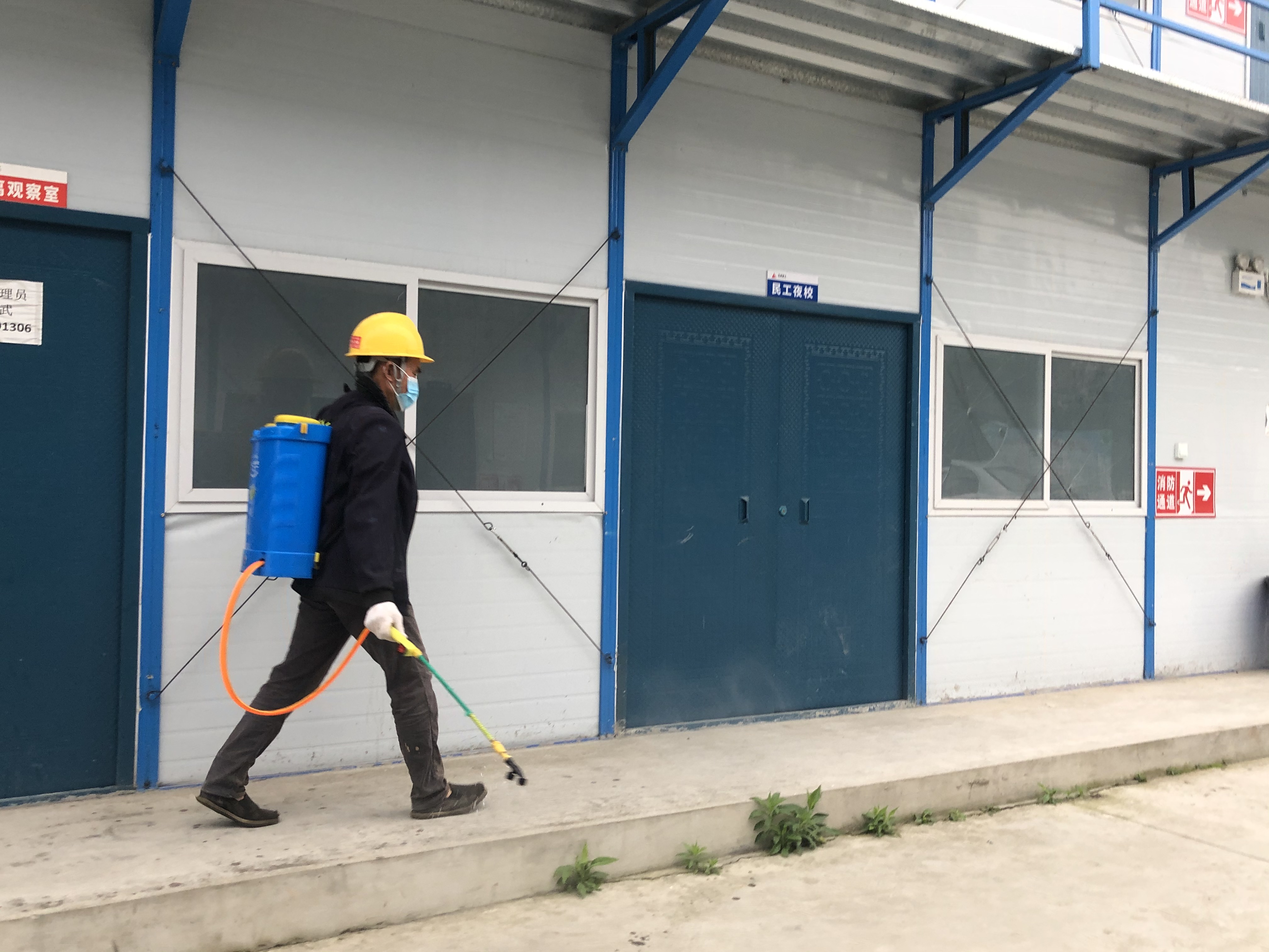 严格落实环境消毒工作,针对施工现场、生活区域及其他活动场所开展每日3次的定期消杀工作,并在显著位置张贴疫情防控宣传海报,切实提高项目人员疫情防控意识。