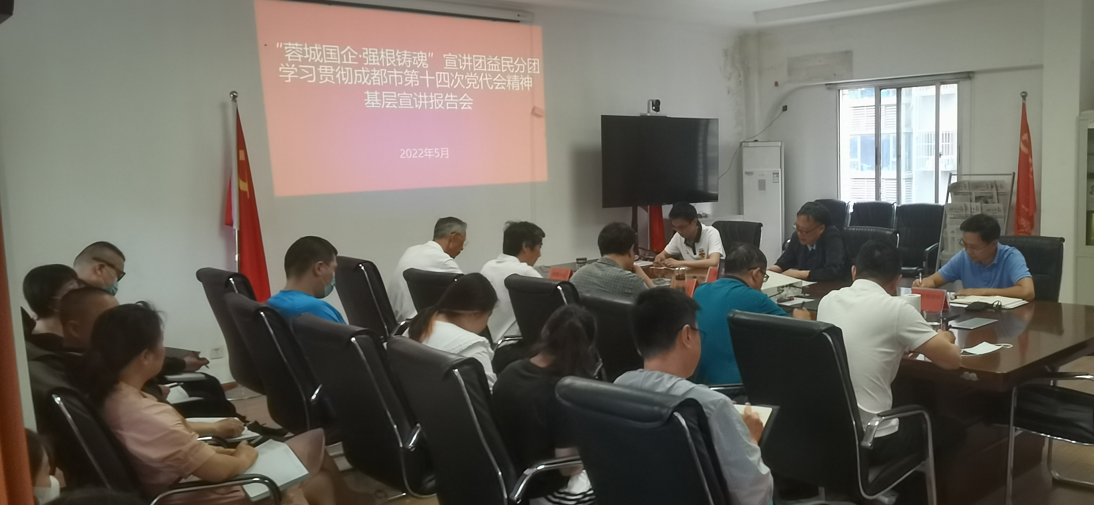 宣讲会上,重点围绕学习贯彻市第十四次党代会精神,带领大家回顾过去五年治蓉兴蓉的发展成绩、启示,明确未来五年成都发展的基本原则、思想、目标、重点任务与党的建设等方面重要内容以及益民集团融入“公园城市示范区”大发展格局。