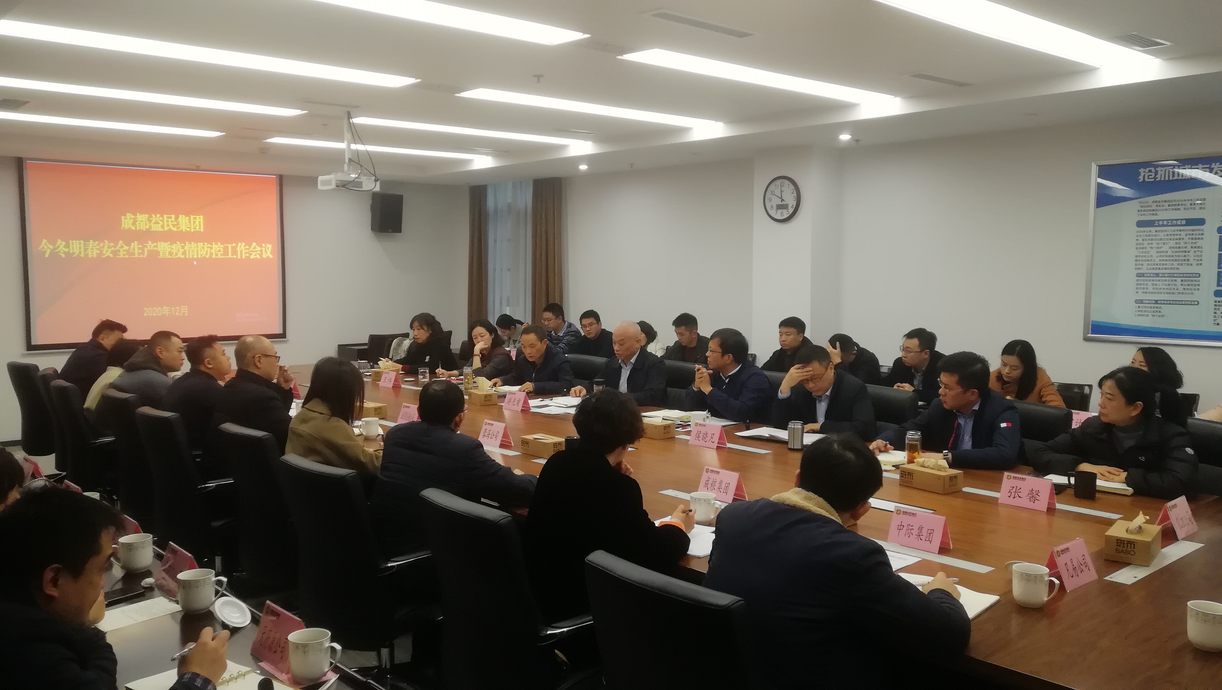 会议传达范锐平书记12月18日关于郫都区《关于“12.7”突发新冠肺炎商情初步反思情况的报告》的批示精神,并结合集团实际,对2020年今冬明春的疫情防控、安全生产、食品安全和环境保护工作重点进行安排部署。