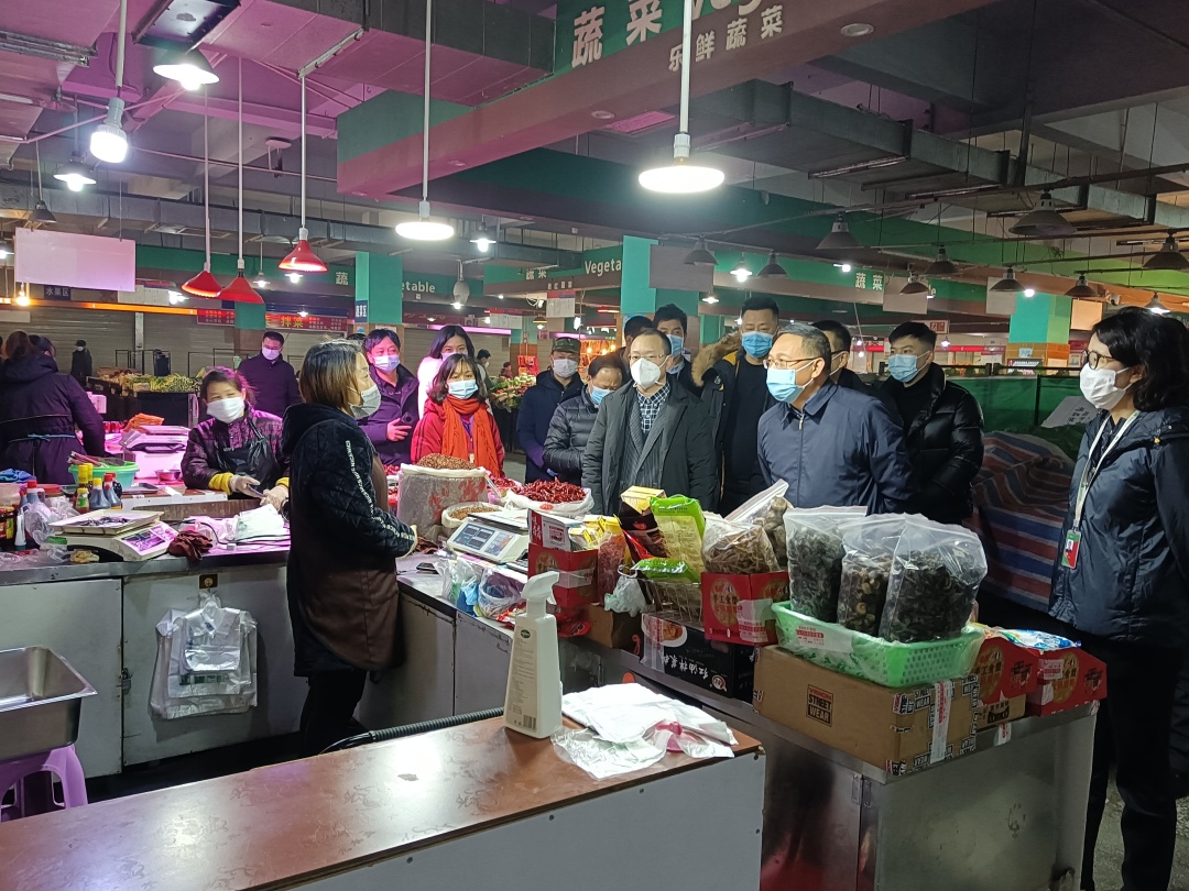 12月18日,市政府副市长刘旭光带队到益民菜市尚阳店调研市场防疫保供和食品安全保障工作情况。