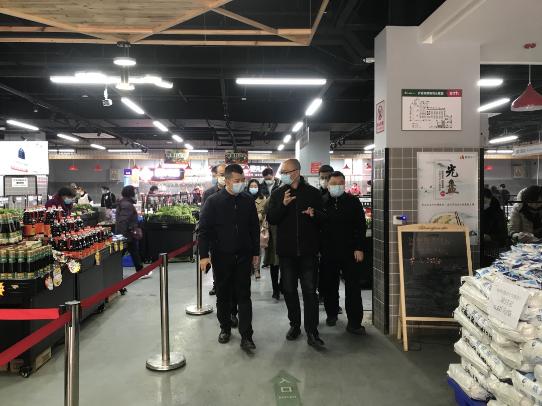 12月10日,省商务厅副厅长、党组成员佘骥一行至益民菜市首创店检查防控保供工作。