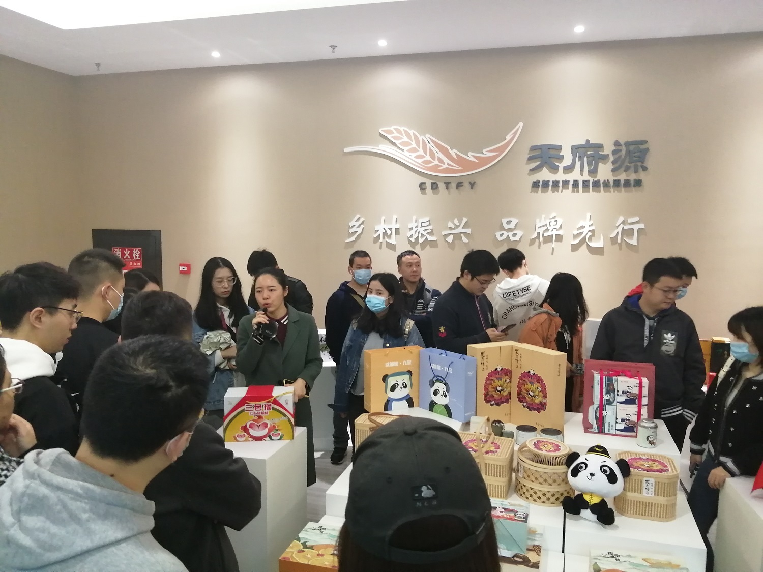 在天府源展厅,学员鉴赏了“成都味·九宝”“天府拾味”等“天府源”众多特色产品,了解了天府源公司如何通过品牌孵化带动川内乃至全国农业产出效益和品牌价值提升。