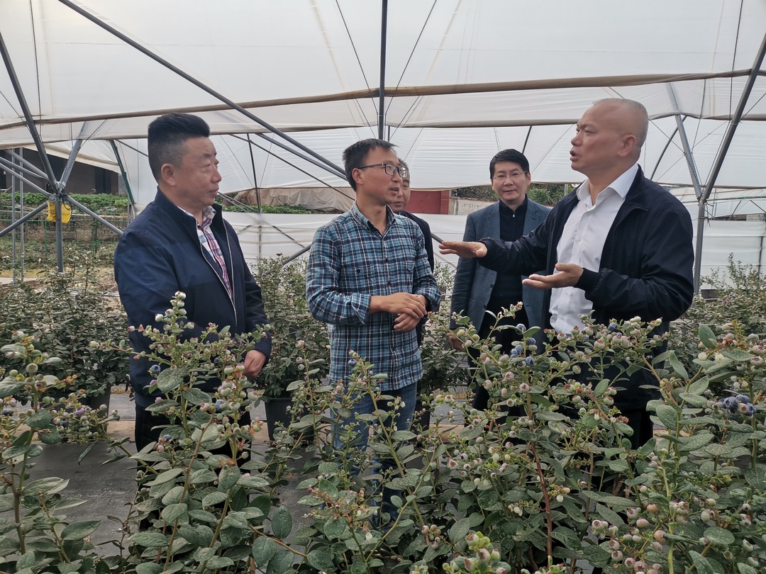 首日,在凉山农投集团公司党委书记、董事长张伟引荐下,游光甫来到凉山州会东县高标准蓝莓产业示范园,参观了园区水肥调控室、蓝莓种植基地、分选加工车间,详细了解了蓝莓基地投资成本、种植技术、生产加工、市场销售等情况。随后,考察组来到会东县22万头生猪繁育基地,详细了解了生猪繁育场建设规模、养殖规模、投资强度、合作模式等情况。