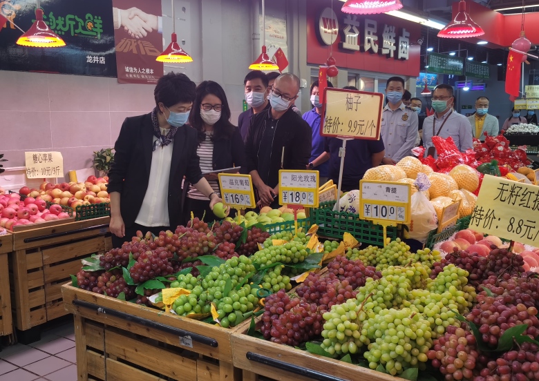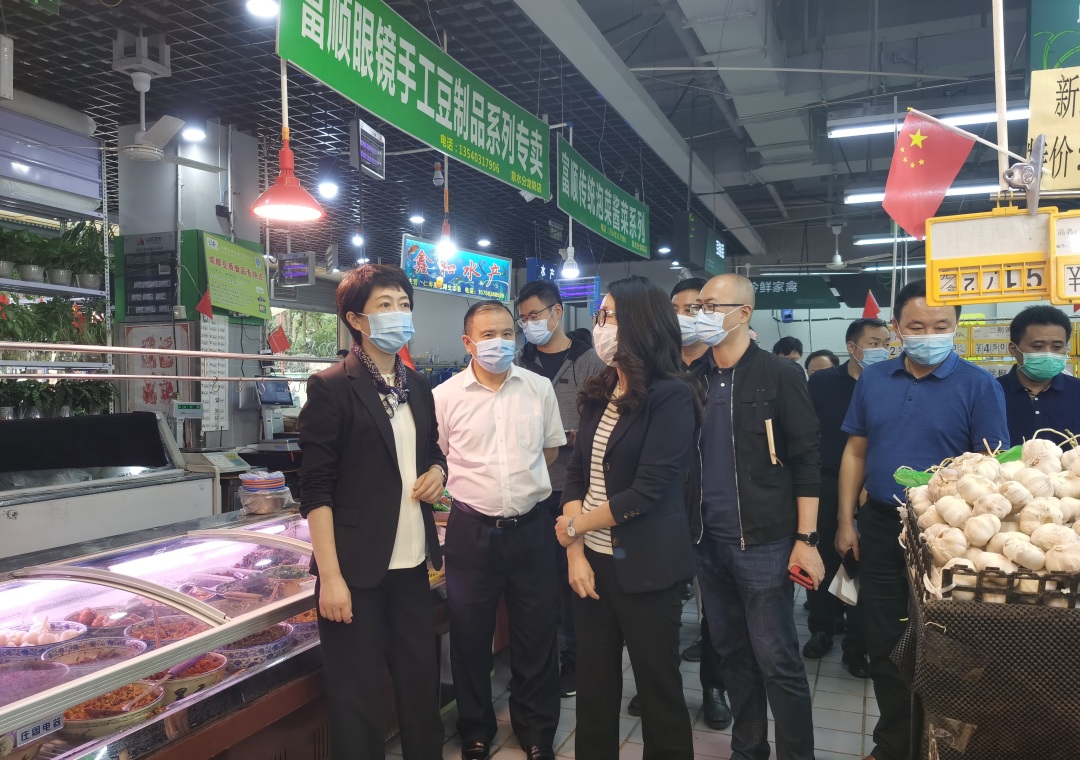9月30日下午,市政府副市长刘筱柳率队到益民菜市龙井店检查安全生产、疫情防控和市场供应情况,市政府副秘书长、办公厅主任廖成珍,市商务局、市卫健委、市市场监管局、市消防救援支队、武侯区政府分管负责同志等陪同检查。