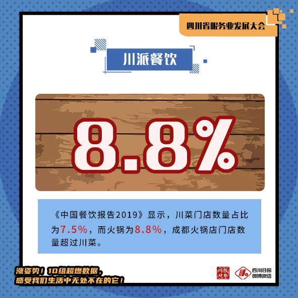 美团点评发布的《中国餐饮报告2019》显示,川菜门店数量占比为7.5%,而火锅为8.8%,成都火锅店门店数量超过川菜;成都的女性消费者比男性更好吃,前者占58.3%,后者占41.7%;90后成餐饮消费主力军。成都在美团外卖的夜间餐饮消费交易额排名第5,仅次于北上广深等4城。从餐饮热度来看,耳熟能详的宽窄巷子、IFS/香槟广场、春熙路成为成都热门商圈TOP3;小吃快餐在宽窄巷子、春熙路/太古里、玉林/芳草街等热门商圈中均为门店最多的品类。