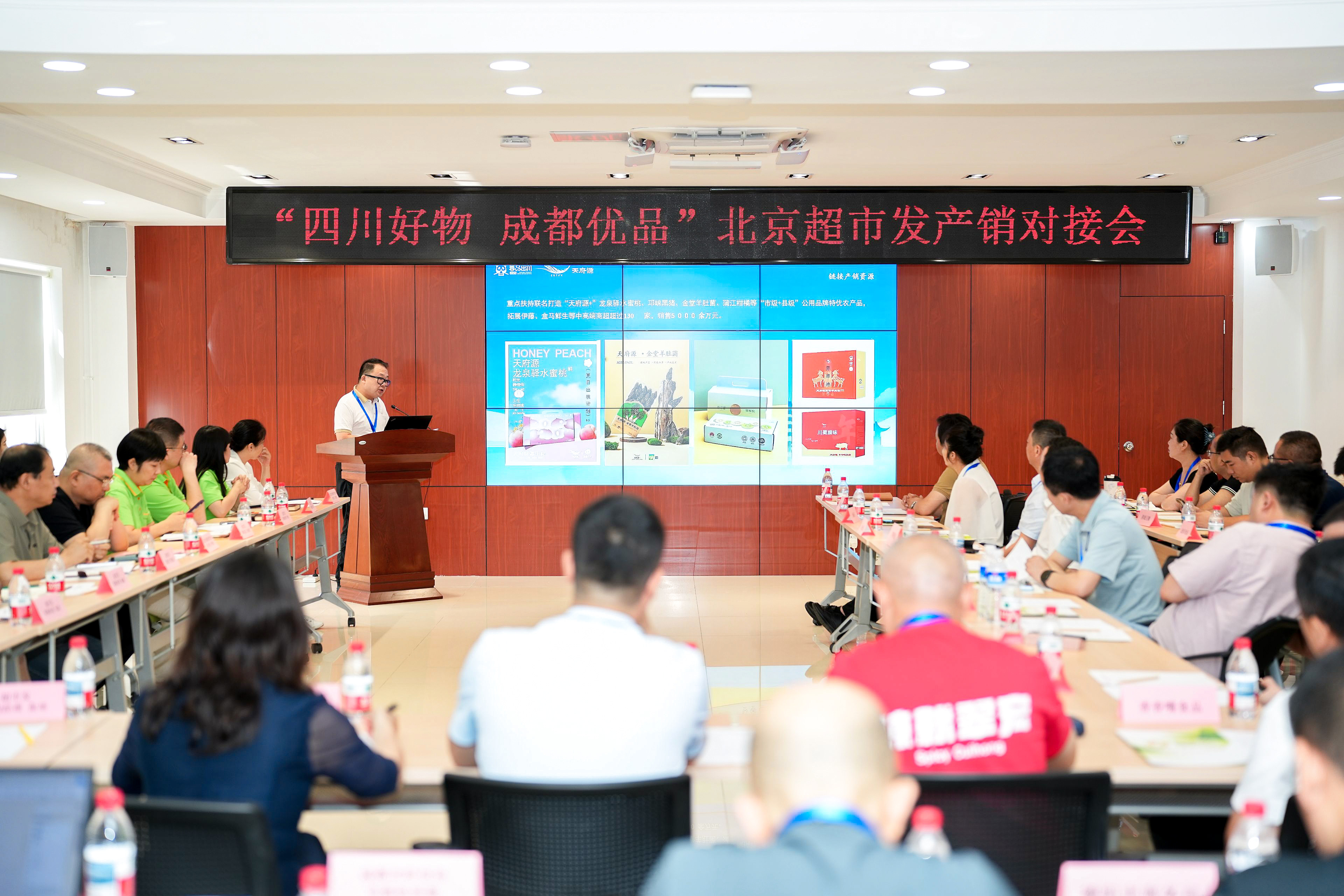 7月21日至22日,天府源公司赴北京参加由市人民政府驻京办、市商务局、市经信局及市新经济委主办的2025年“四川好物·成都优品”联动出川市场拓展活动(北京站)。活动期间,天府源公司先后参与了在北京超市发连锁公司、北京物美商业集团和北京尧地农业科技公司举办的三场产销对接会,围绕成都市实施品牌强农战略、益民集团民生保供功能定位、天府源品牌建设以及服务成都优质农产品打通供应链渠道等内容在会上做推介发言,并与北京尧地农业科技公司签订了战略合作协议。
