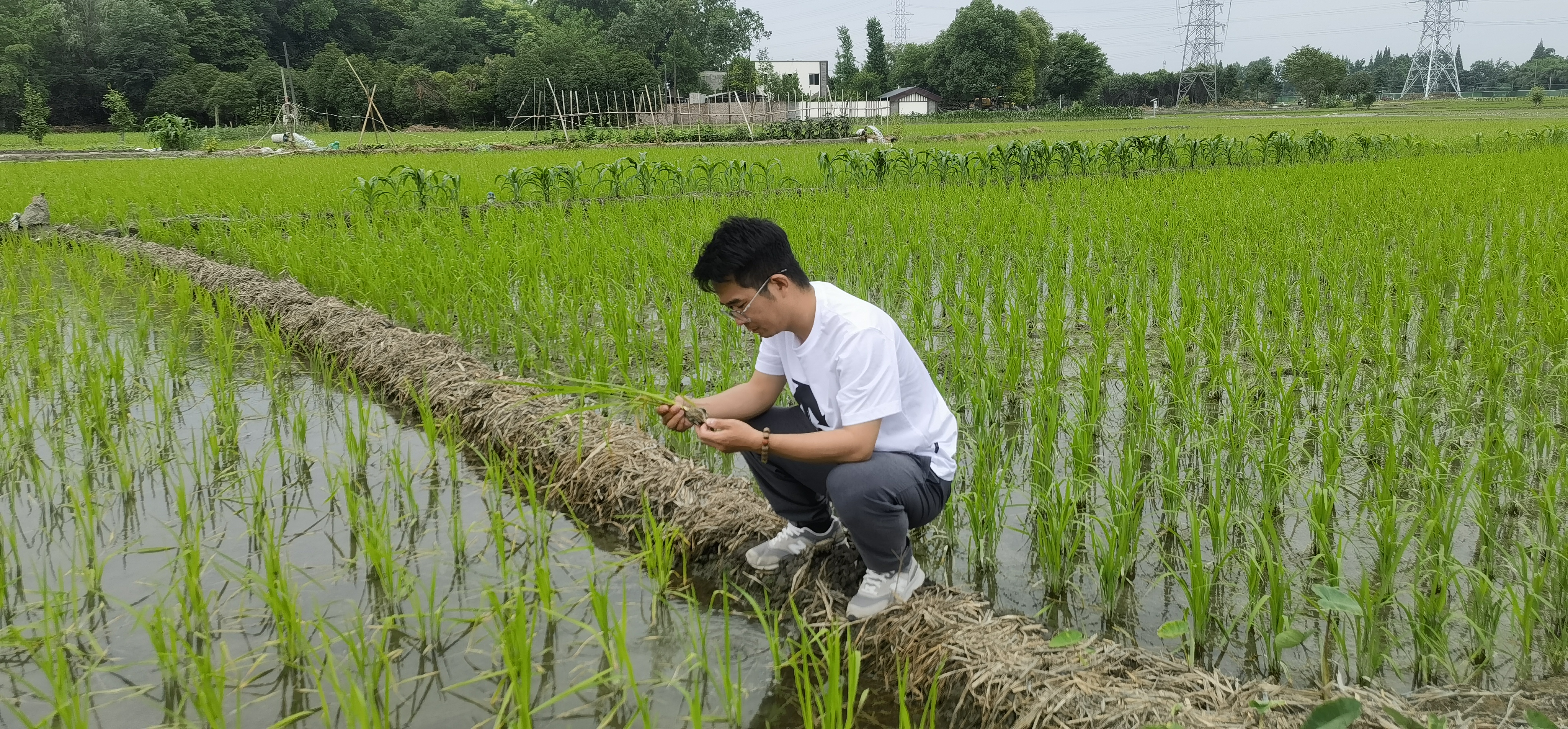 近日,在郫都德源街道东林村,一片片稻田已插上了秧苗,90后“新农人”尹若舟每天都忙着在田里转悠。